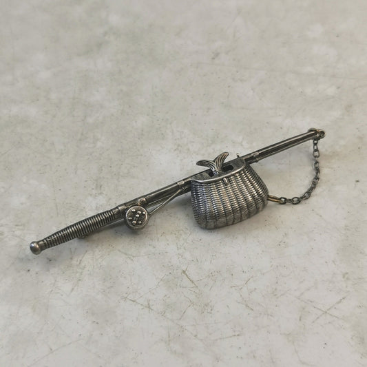 Vintage Sterling Silver Fishing Rod with Fish Brooch