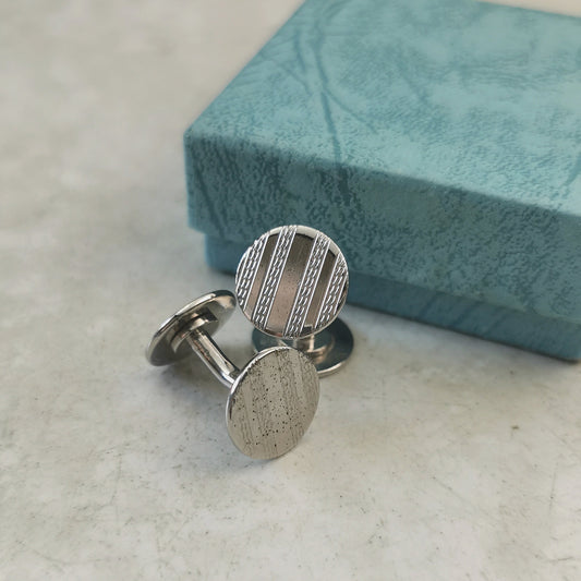 Vintage Sterling Silver Patterned Circle Cufflinks
