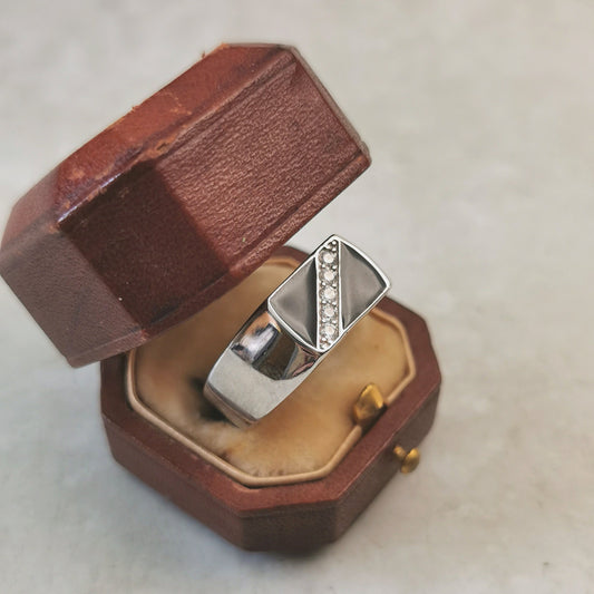 New Sterling Silver CZ & Black Enamel Signet Ring