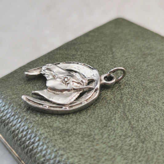 Vintage Silver-tone Large Horse & Horseshoe Charm