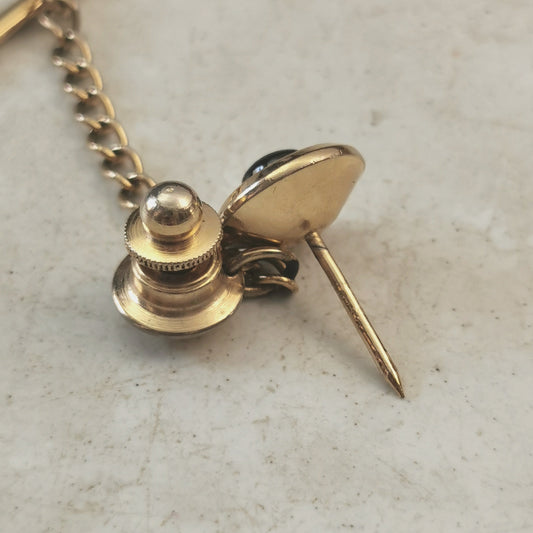 Vintage Gold Tone Cats Eye Black Sapphire Tie Tack