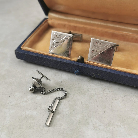 Vintage Sterling Silver Tie Tack and Cufflinks Set