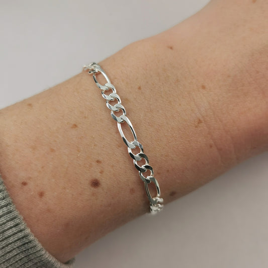 New Sterling Silver 4.8mm Figaro Link Chain Bracelet