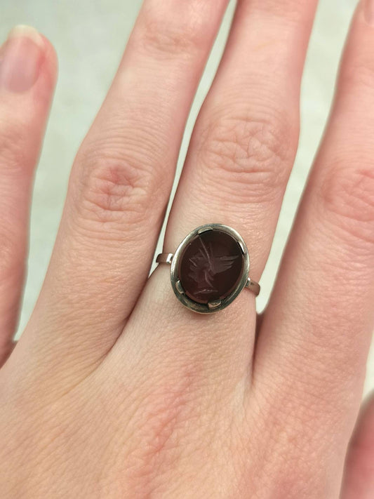Vintage 835 Silver Carnelian Greek God Hermes Intaglio Ring