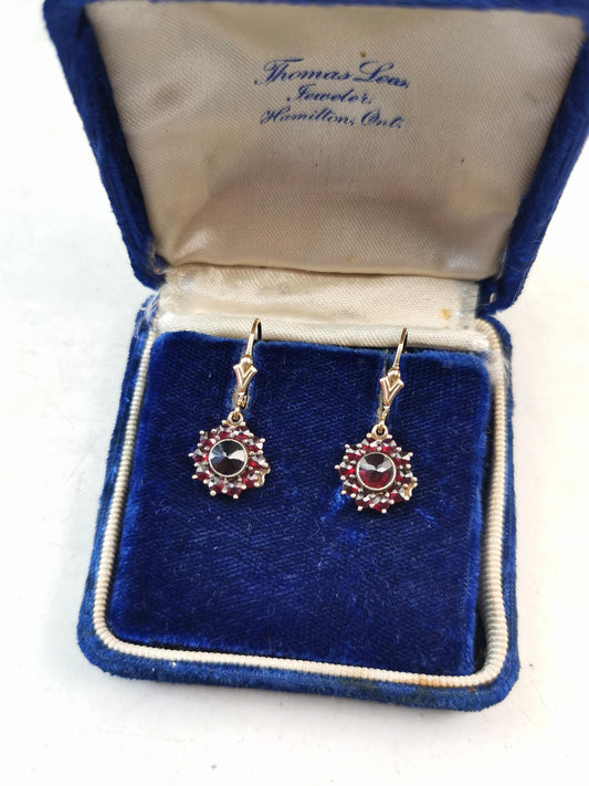 Vintage Bohemian Garnet Lever Back Earrings - Sterling Silver & 14k Gold Filled