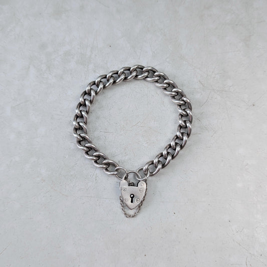 Vintage 1965 Sterling Silver Heart Padlock Bracelet