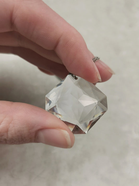 Vintage Art Deco Style Crystal Lozenge Pendant on Sterling Silver Chain