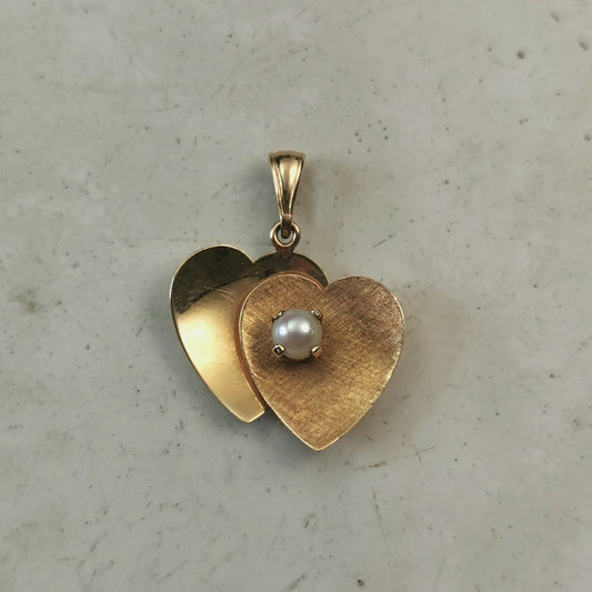Vintage Birks 14k Yellow Gold Double Heart Pendant - Cultured Pearl - Love