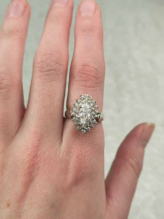 Vintage 1970s Sterling Silver Marquise CZ Cluster Ring