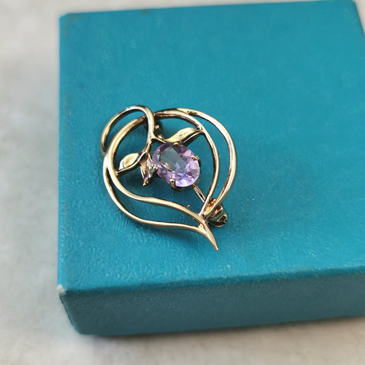 Vintage Delicate Sterling Silver Gold Vermeil Amethyst Brooch