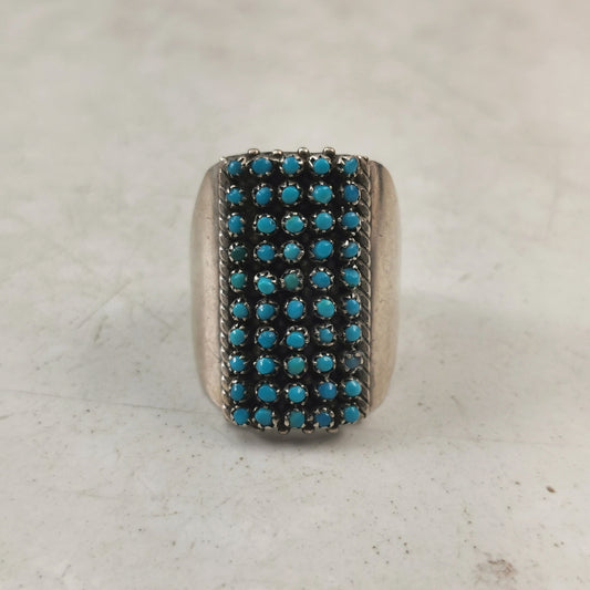Vintage Peter Haloo Zuni Sterling Silver and Turquoise Wide Ring