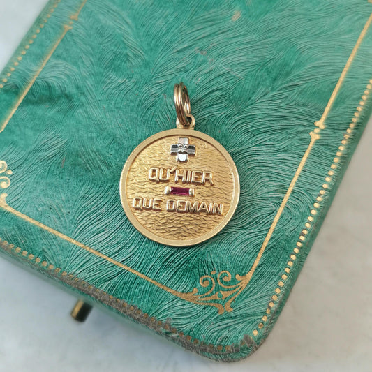 Vintage Mid-century 14k Yellow Gold Plus Qu'hier Moins Que Demain Charm