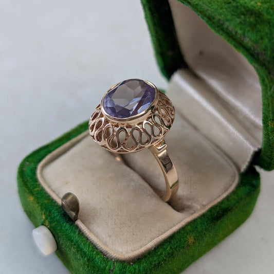Vintage Polish 14k Yellow Gold Colour Change Alexandrite Ring