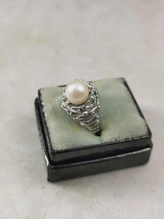 Vintage Mid-century Modern Sterling Silver Cultured Pearl Ring
