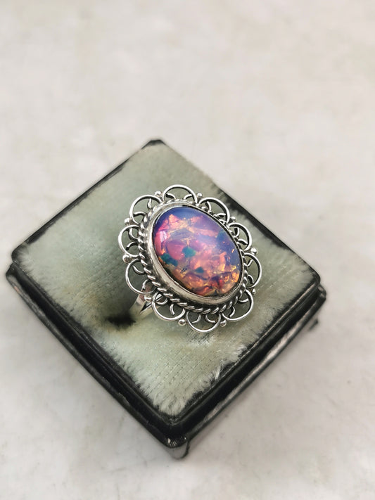 Vintage Mexican Sterling Silver Art Glass Opal Ring