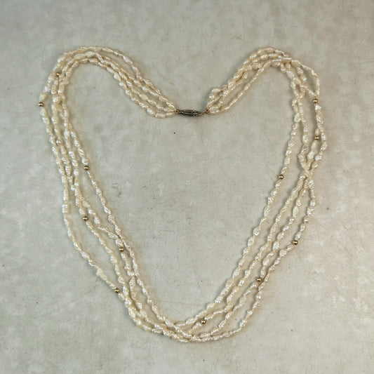 Vintage Sterling Silver Gold Vermeil 4 Strand Rice Pearl Necklace