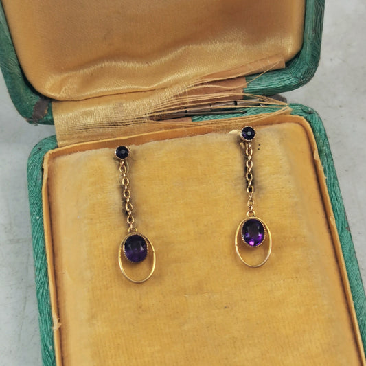 Edwardian 9ct/10K Yellow Gold and Amethyst Conversion Earrings