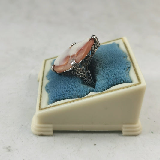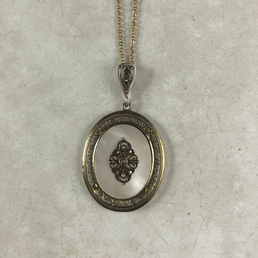 Art Deco 835 Silver Mother of Pearl and Marcasite Filigree Necklace