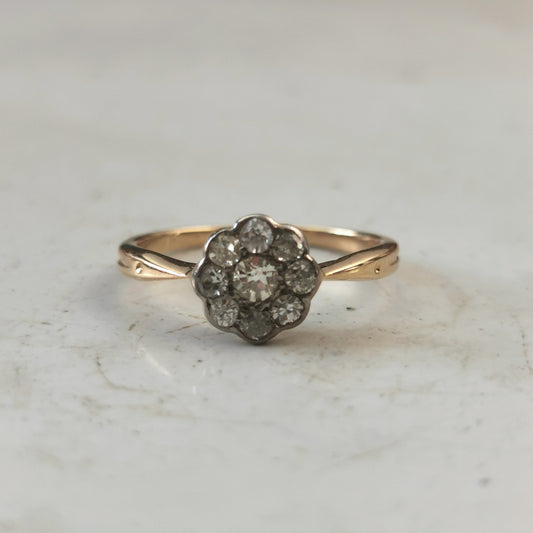 Edwardian 18k Yellow Gold Old Mine Cut Diamond Cluster Ring