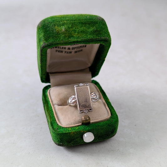 Art Deco Sterling Silver & 10K Yellow Gold Initial B Pinky Signet Ring