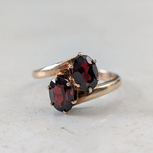 Art Deco 10k Yellow Gold Toi & Moi Garnet Ring