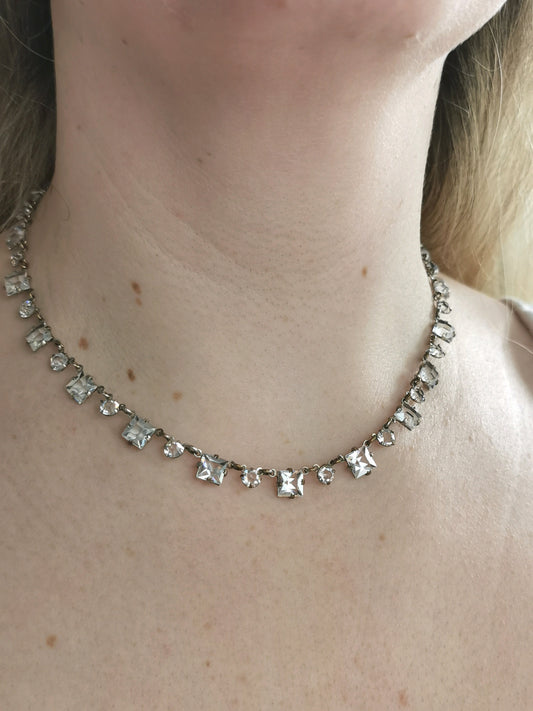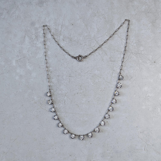 Art Deco Sterling Silver Demi Riviere Crystal Necklace
