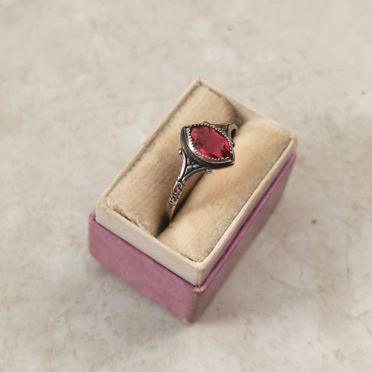 Edwardian Sterling Silver & Synthetic Ruby Ring