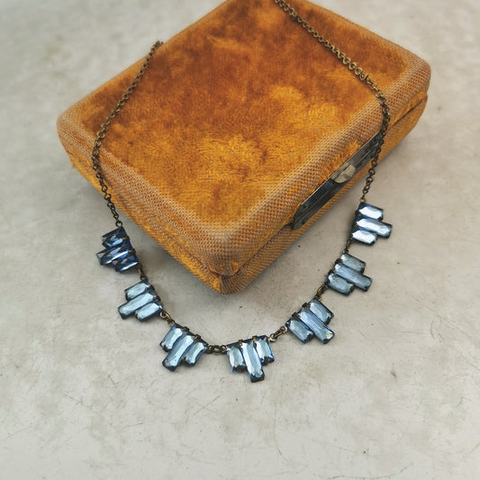 Art Deco Blue Vauxhall Glass Choker Necklace