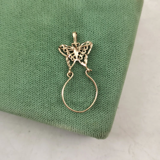 Estate 10k Yellow Gold Diamond Cut Butterfly Charm Holder Pendant