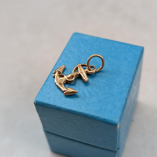 Estate 10k Yellow Gold Diamond Cut Anchor Pendant