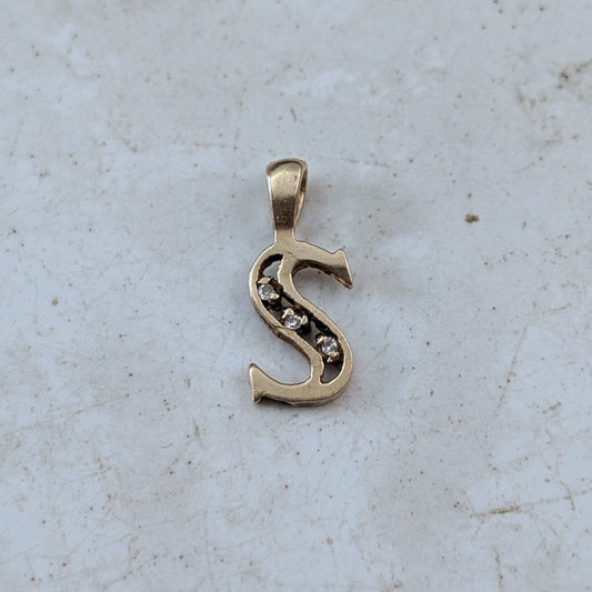 Estate 10k Yellow Gold and Diamond Initial S Pendant