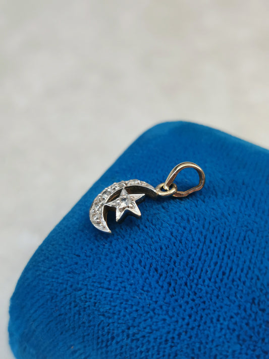 Estate 10k Yellow & White Gold Moon & Star Pendant
