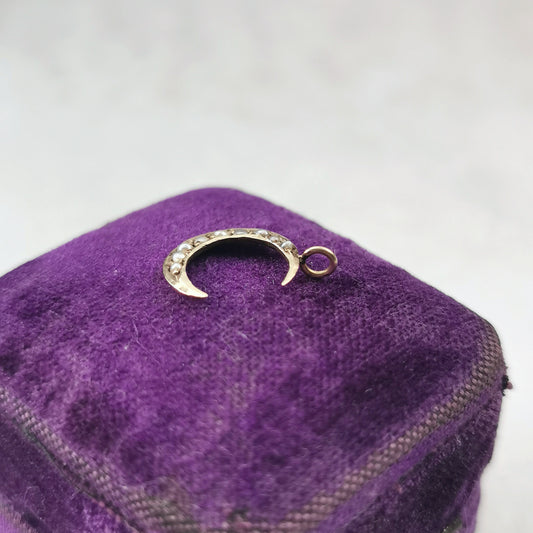 Victorian 10k Yellow Gold and Seed Pearl Crescent Moon Conversion Pendant
