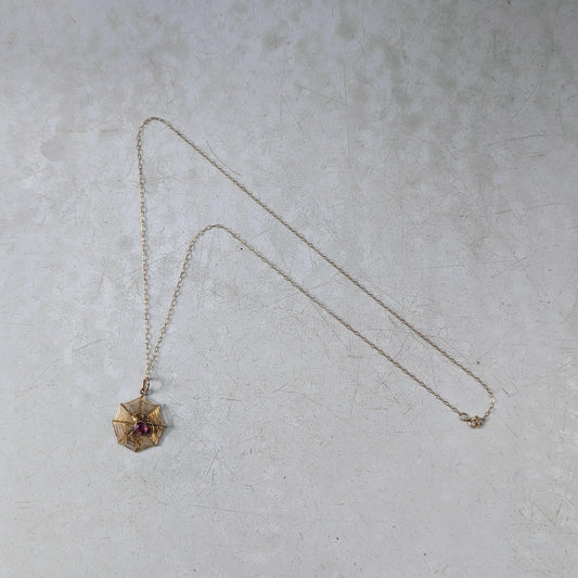 Victorian 9ct Yellow Gold Spider Web Charm Necklace