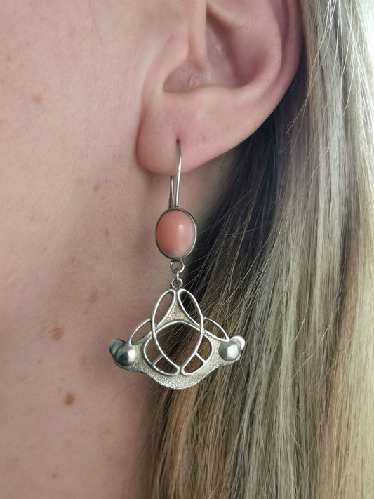 Sterling Silver Art Nouveau Style Russian Coral Dangle Earrings