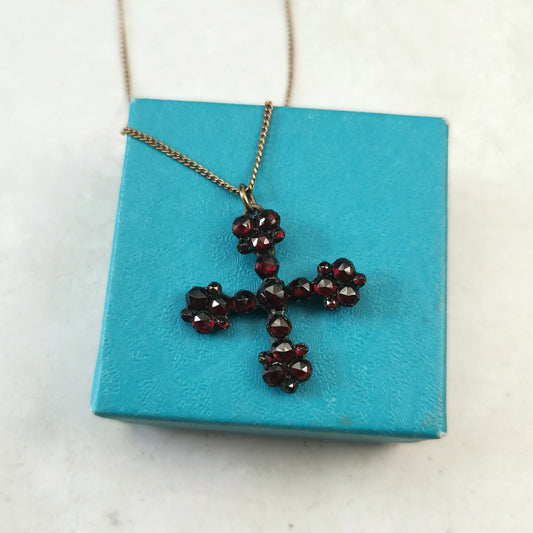 Victorian Bohemian Garnet Cross Pendant Necklace