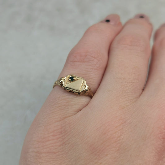 Retro 1950's 10k Yellow Gold Blank Signet Ring with Paste Emerald