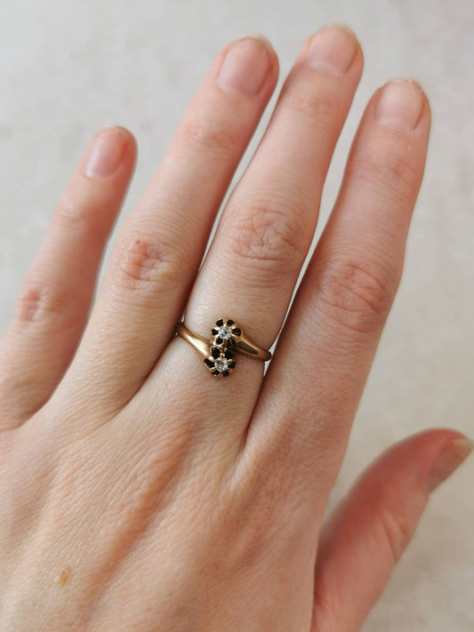 Victorian 10k Yellow Gold Old Mine Cut Diamond Toi & Moi Ring