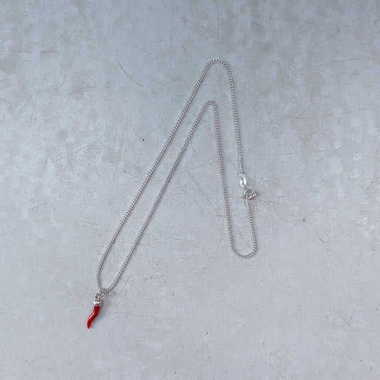 Sterling Silver Italian Red Coral Cornicello Necklace - Lucky Horn