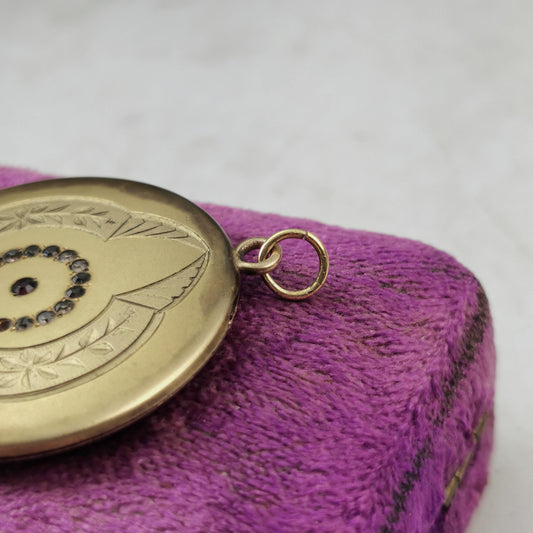 Victorian Edwardian Gold Filled Large Locket - Paste Rhinestone - Flower Patterned Photo Locket