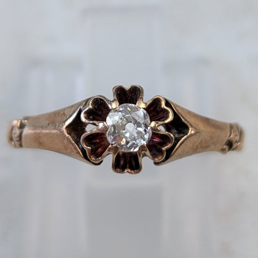 Victorian 14k Yellow Gold Old Mine Cut Diamond Ring
