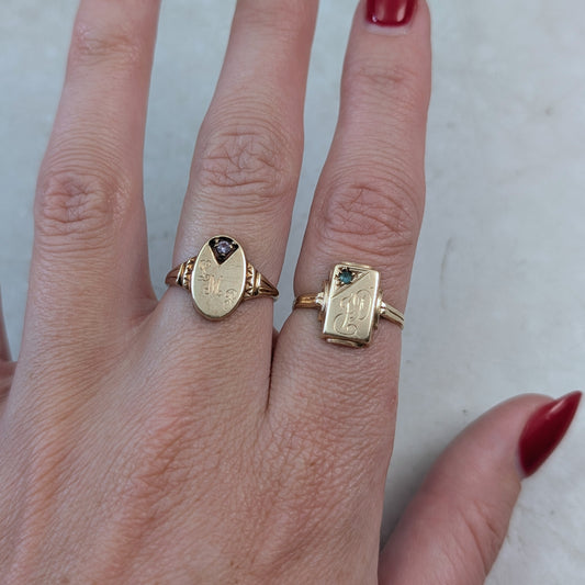 Vintage 10k gold Initia Signet Rings with Accent Gems
