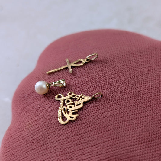 Miscellaneous Solid Gold Charms - 9K Ankh - 10k 5mm Pearl - 10k #1 Lady Pendant