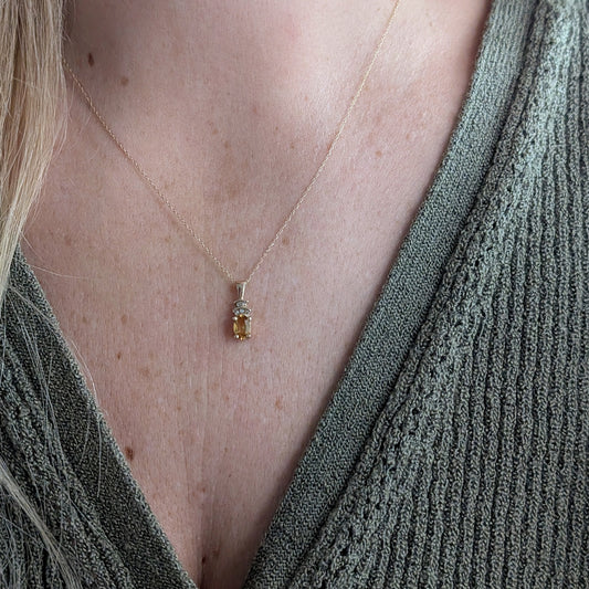 10k Yellow Gold Citrine and Diamond Pendant Necklace