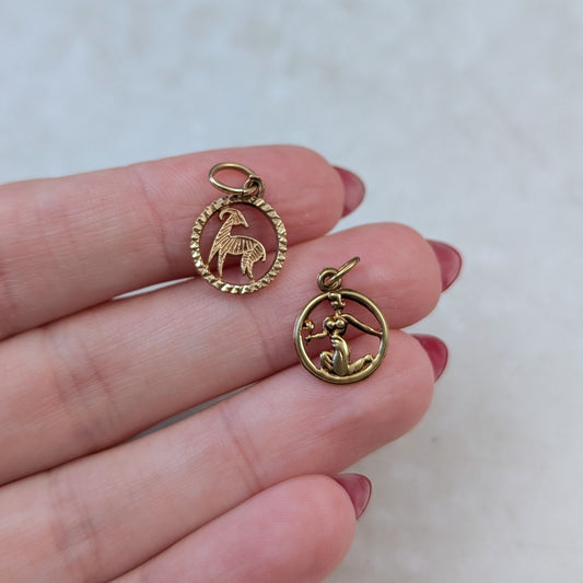 Vintage Yellow Gold Zodiac Signs - 14k Virgo & 10k Aries