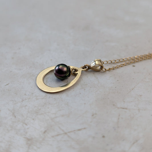Vintage 14k Yellow Gold Tahitian Pearl Necklace