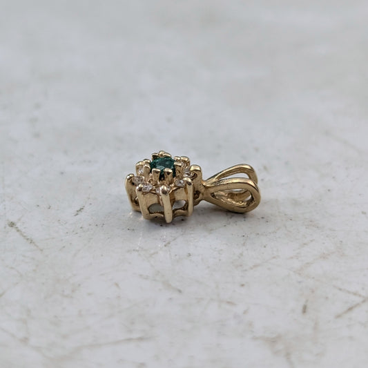 14k Yellow Gold Emerald and Diamond Cluster Flower Pendant