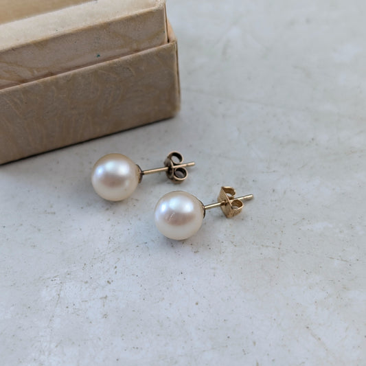 Vintage 10K Yellow Gold Cultured Pearl Studs