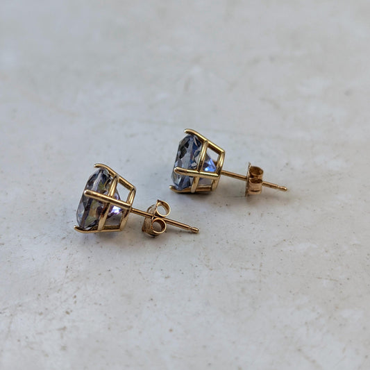 Estate 14k Yellow Gold Blue Mystic Topaz Studs
