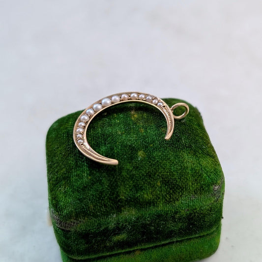 Victorian 14k Yellow Gold Seed Pearl Crescent Moon Conversion Pendant - Solid Gold - Antique Up-cycled Brooch - Medium Size